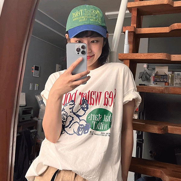 [빈티지/오버핏] 워터 프린팅 루즈핏 반팔 티셔츠