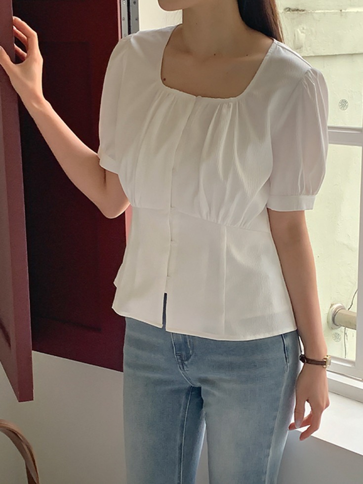 [무료배송][여리슬림핏/소개팅룩✿] [44-120] 다니러블 스퀘어넥 셔링 반팔 블라우스( 봄-가을-신상-데일리룩-데이트룩-하객룩-소개팅룩-빅사이즈-120사이즈-자체제작-러블리-체형커버-반소매-페플럼 )