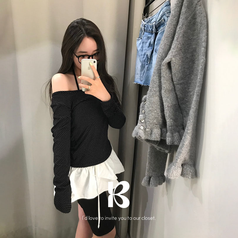 [MADE/3color]페탈 도트 와이드 유넥 티셔츠