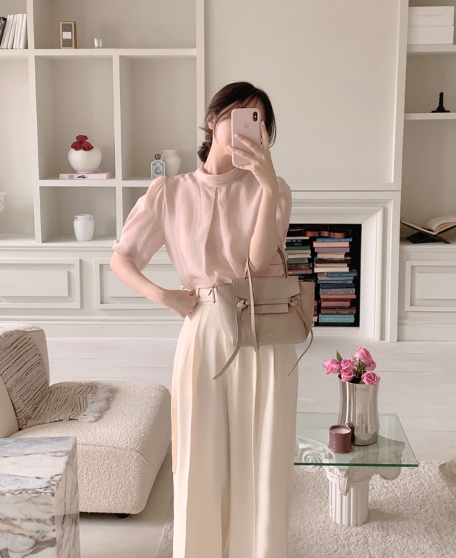 당일발송[하객룩/여름블라우스] 플론 하프넥 퍼프 반팔 블라우스