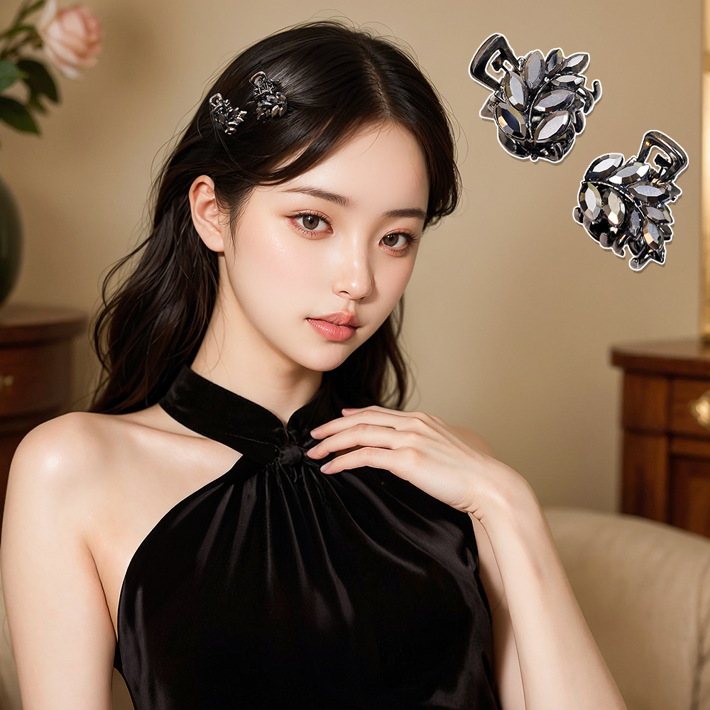 ⚡당일출발 [2개SET💗] 블랙리프 큐빅 미니 메탈 헤어 집게핀 머리핀 세트