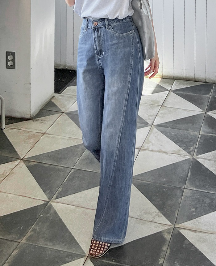 [26-38][롱][킬링체인]샤인섹션와이드 데님팬츠