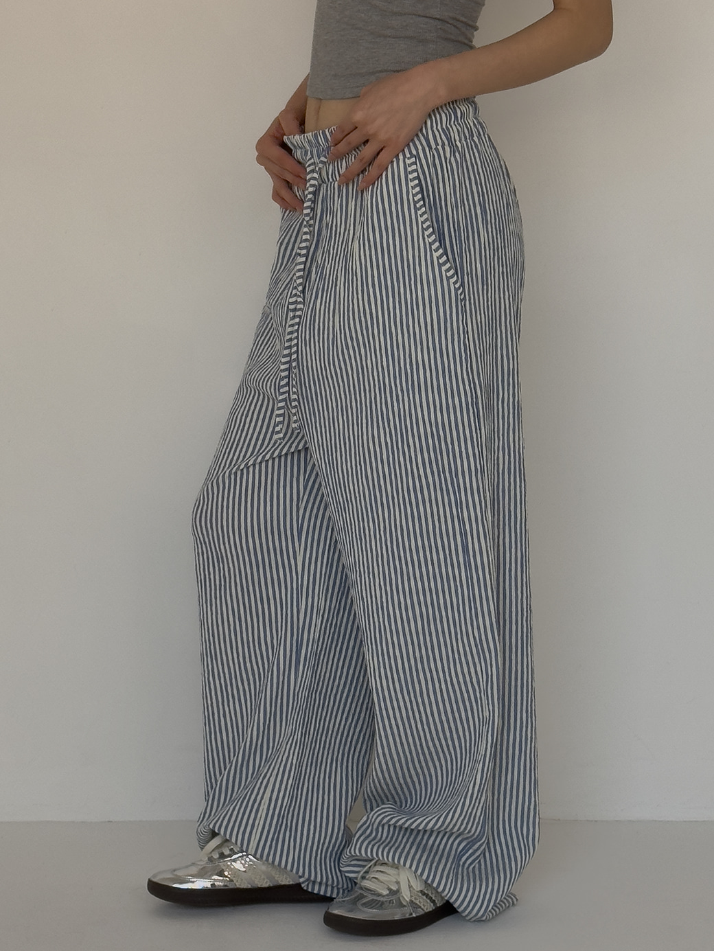코일 시어커서 스트라이프 팬츠