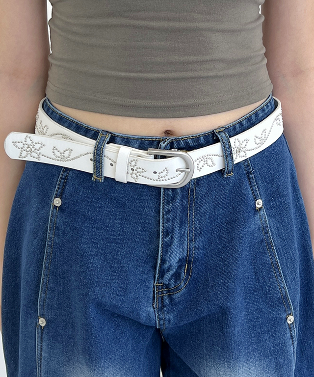 [보헤미안벨트/보호시크/레이어드/빈티지무드] 플라워 스터드 찡 벨트 (2color)