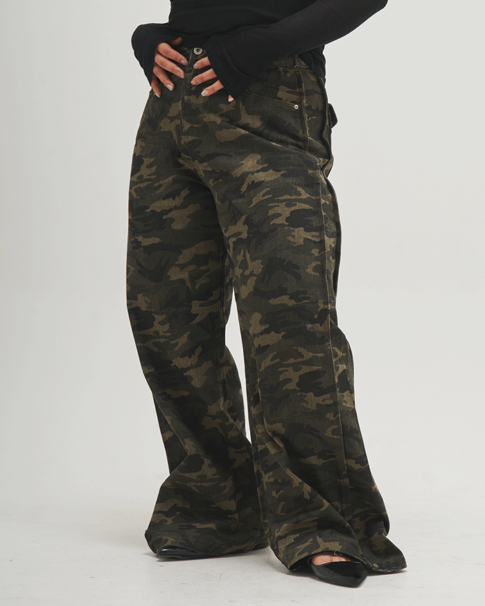 [S-2XL] 카모 투버튼 스냅 와이드팬츠