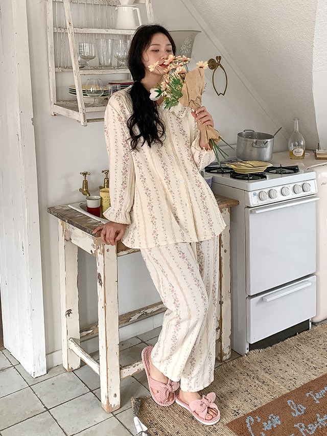 빅사이즈 55-99 뮤데잇 플라워 줄무늬 빅카라 요루 파자마 잠옷 세트