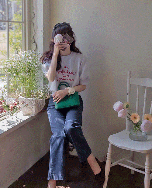 [LABEL] 봄봄시즌 입체적 레터링자수 데일리 귀요미핏 티