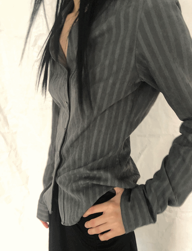 (당일/세일) 마티 스트라이프 스웨이드 셔츠 (크림)