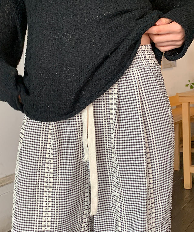버블리 에스닉 깅엄 체크 와이드 팬츠
