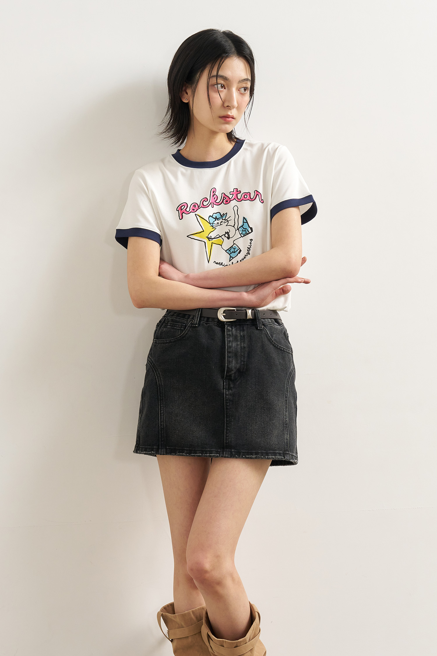 WOMAN 락스타 레귤러 링거 티셔츠 [WHITE]