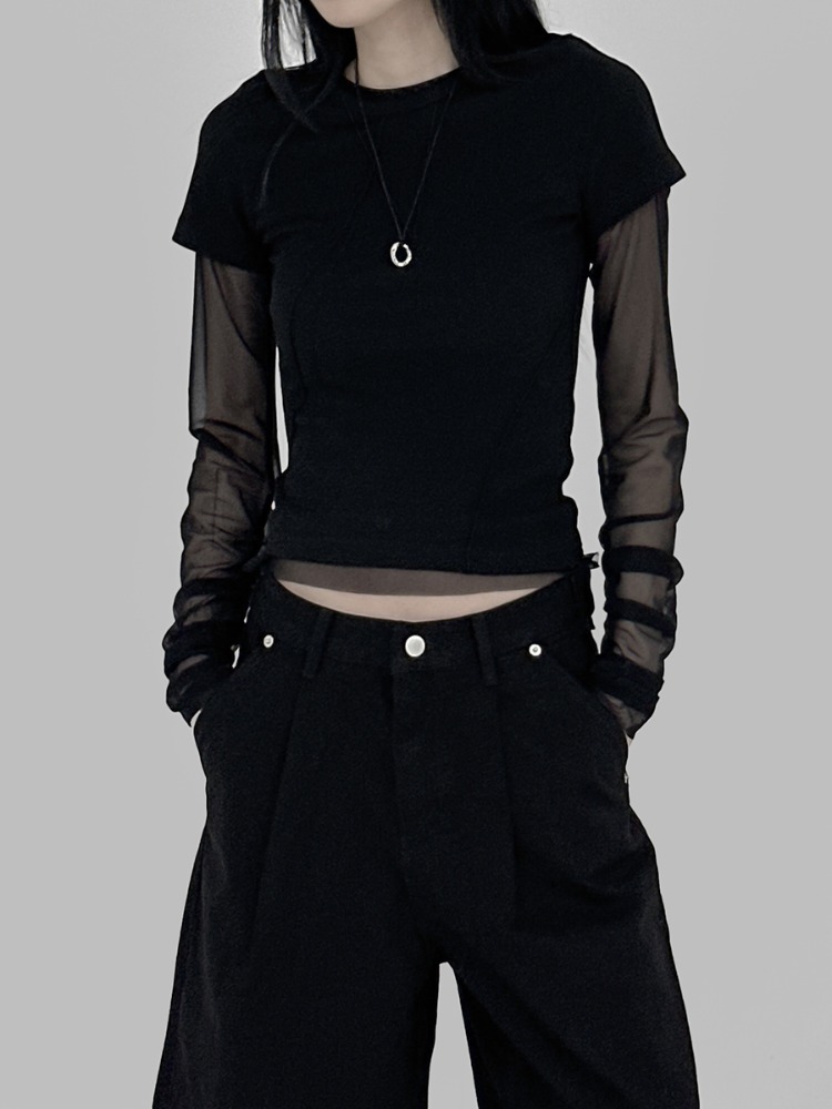 망사 셔링 라운드 티 (3color)