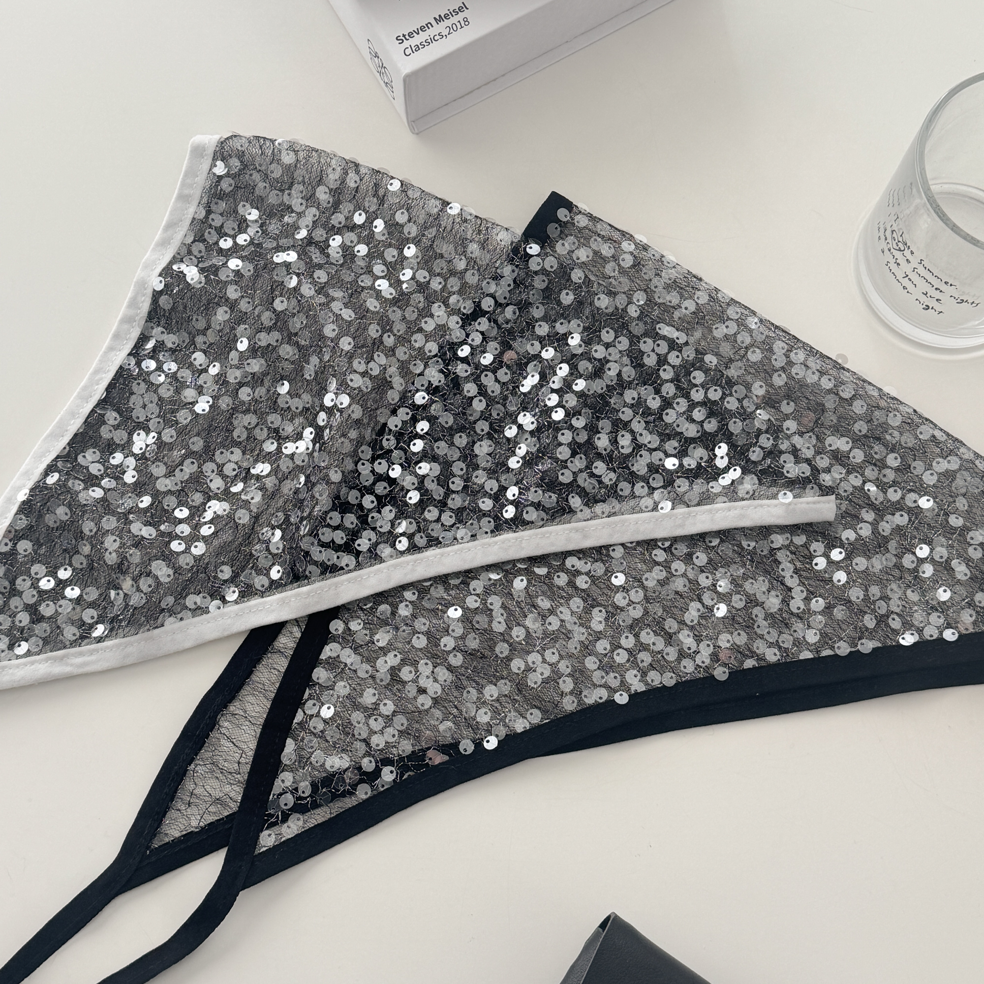 [퀄리티굿] 스팽글 라인 시스루 삼각 헤어 두건 2color