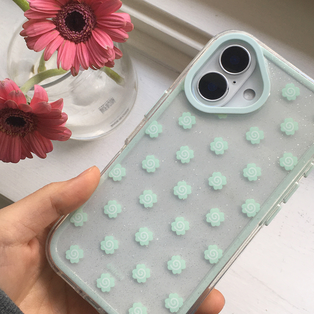 세잎클로버 글로시 글리터 배색 하드 투명 아이폰케이스