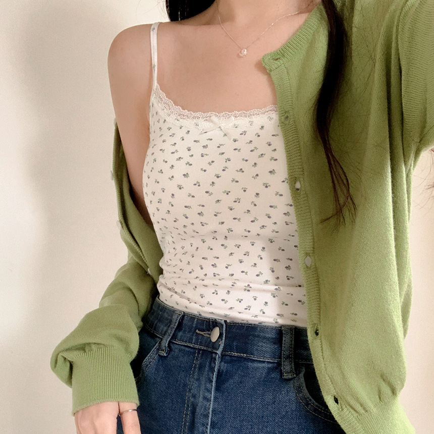 [무료배송][캡 내장/속옷필요X]로치 여름 캡 내장 플로랄 패턴 레이스 나시