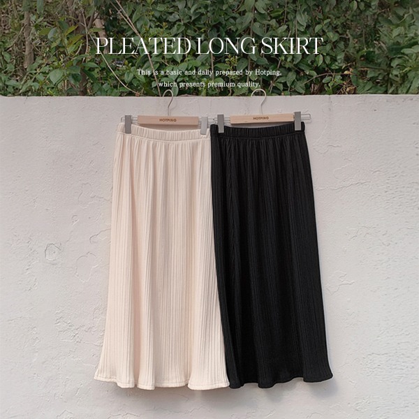 [쾌적함↑/들러붙음X][구김↓][MADE] 로엘리 플리츠 플레어 밴딩 롱스커트(44~120) (빅사이즈치마-빅사이즈스커트-밴딩치마-밴딩롱치마-플리츠주름-주름치마-플리츠스커트-출근룩-하객룩-데일리룩)