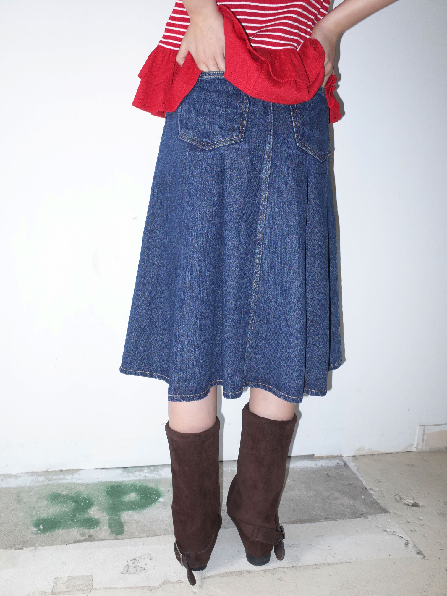 85 프레피 데님 플리츠 SK