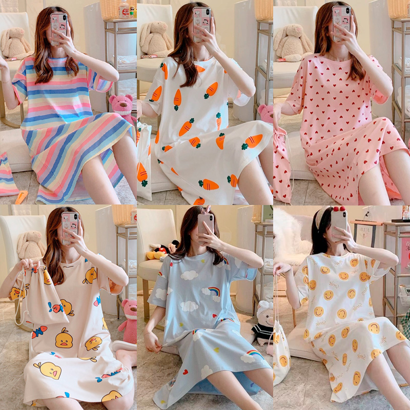 여름 롱 원피스 반팔 잠옷 면 파자마 임산부 홈웨어