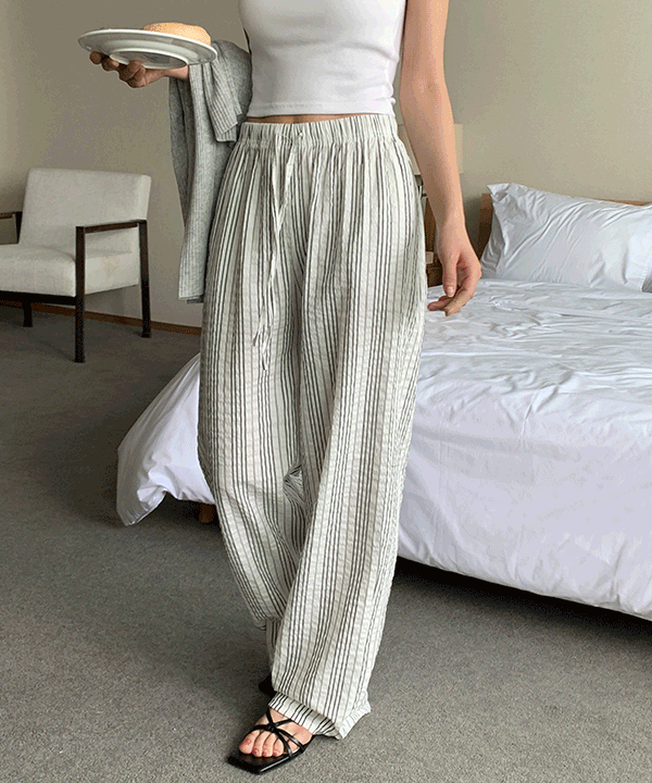 폰티브 스트라이프 와이드 밴딩 팬츠 -3color