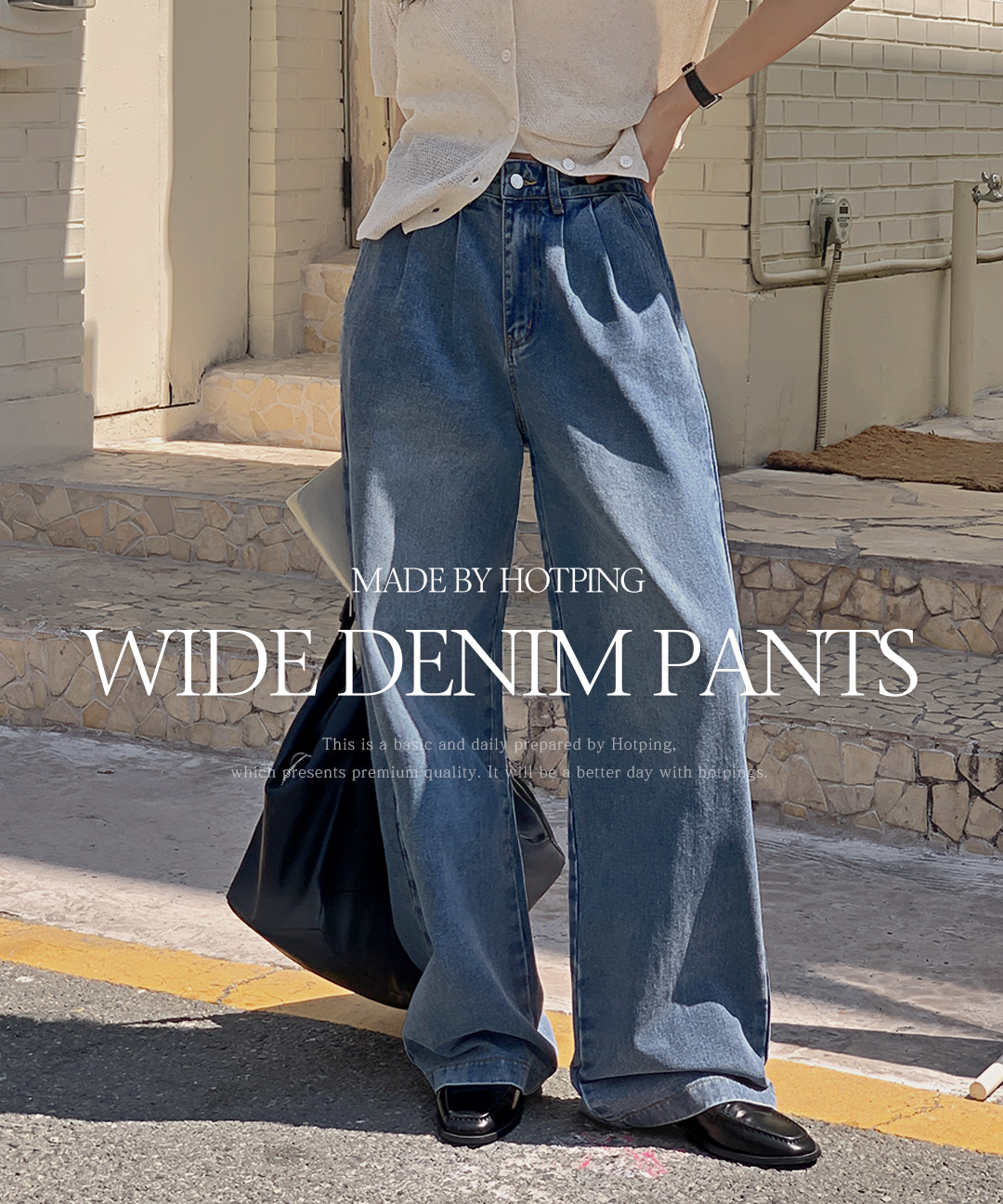 [시즌리스/난스판👖][MADE] 스틸리 워싱 뒷밴딩 핀턱 와이드 데님 팬츠 (25~36) (빅사이즈청바지-빅사이즈와이드데님팬츠-베이직템-투핀턱데님-4게절템-체형커버-군살커버)