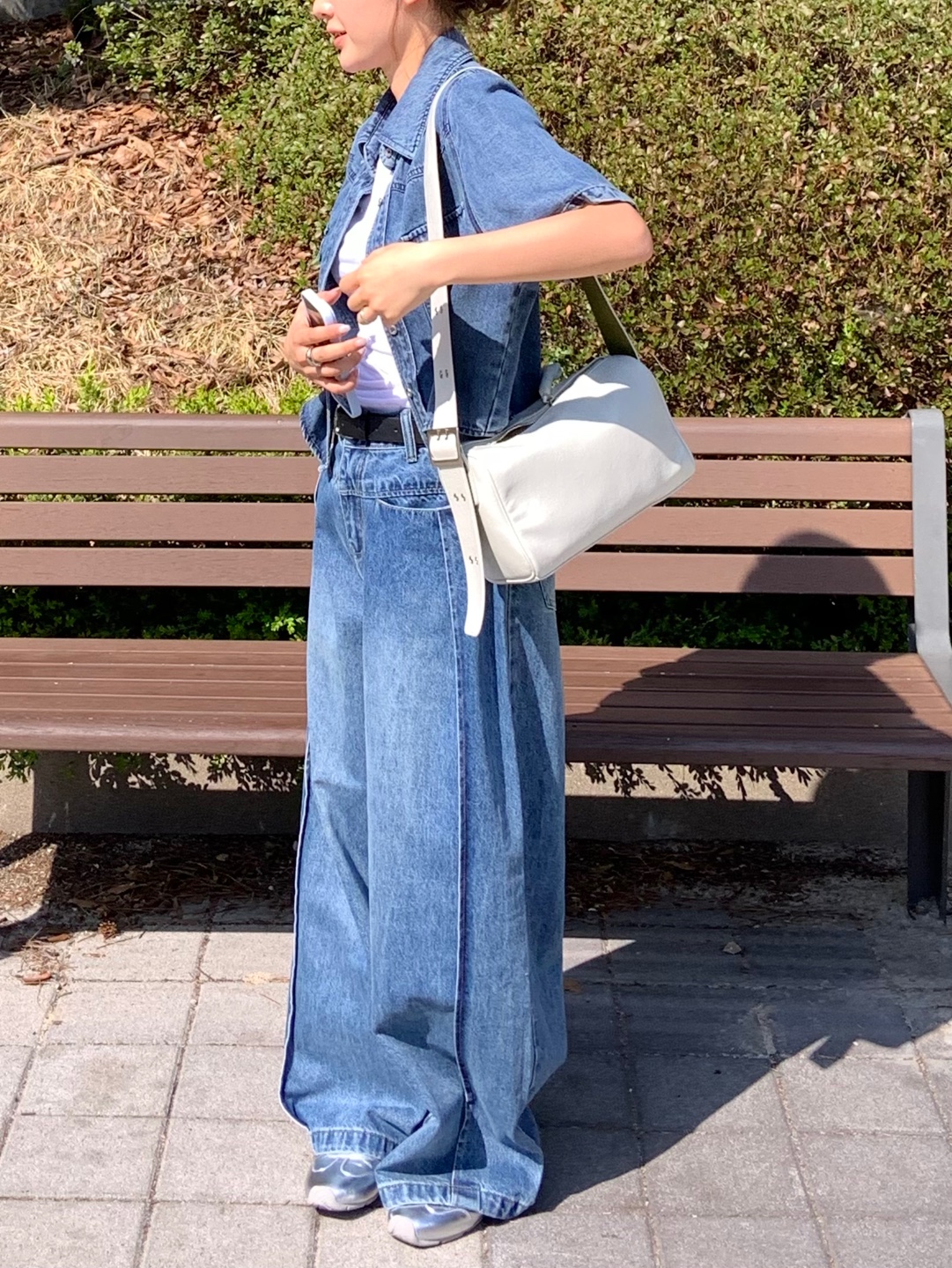 램퍼 절개 앞포켓 와이드 데님(1color)