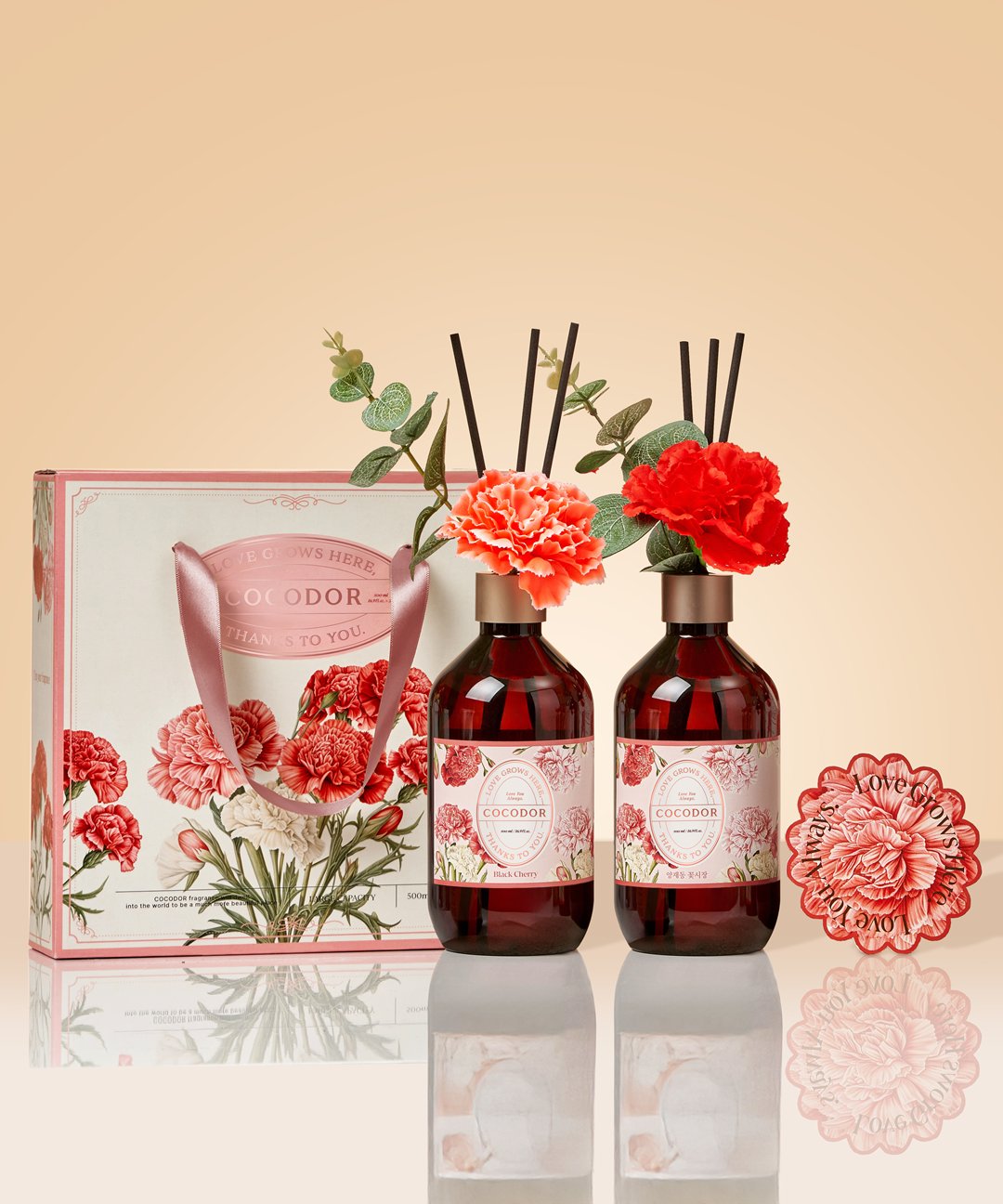 코코도르 카네이션 프리미엄 디퓨저 500ml 2개입 선물세트 + 생화 한송이 증정 | 가정의달 부모님 선생님 선물