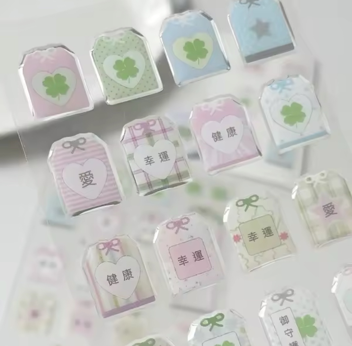 행운 소원 부적 오마모리 네잎클로버 스티커