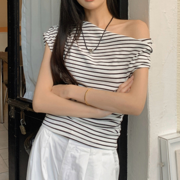 아제르 단가라 셔링 드레이프 오프숄더 티셔츠