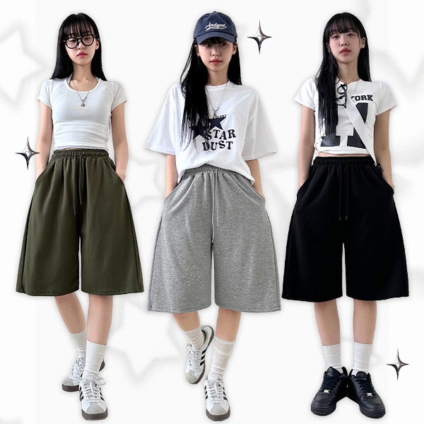 [백포켓/옆핀턱] 더블 절개라인 와이드 버뮤다 팬츠