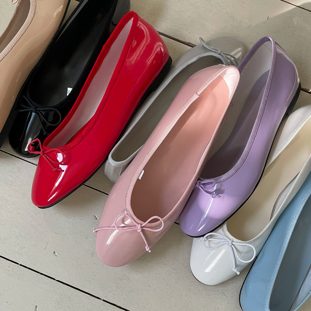 파스텔 에나멜 리본 플랫 슈즈 발편한 여성 단화 1cm
