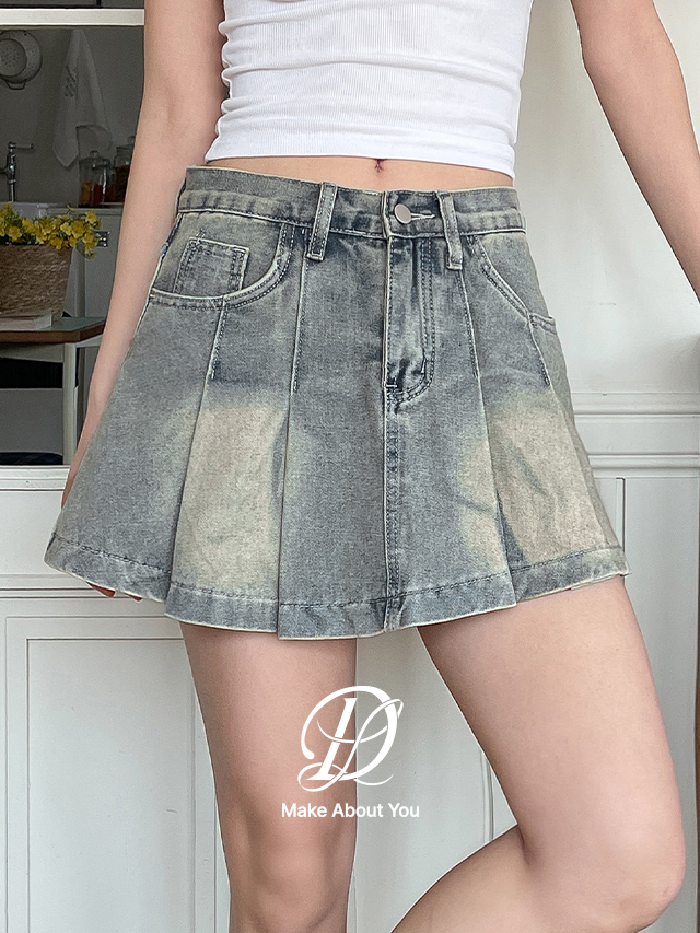 [1천장돌파][MADE] 빅사이즈 S-5XL 에픽 워싱 데님 레이어드 플리츠 미니 스커트 팬츠 치마바지