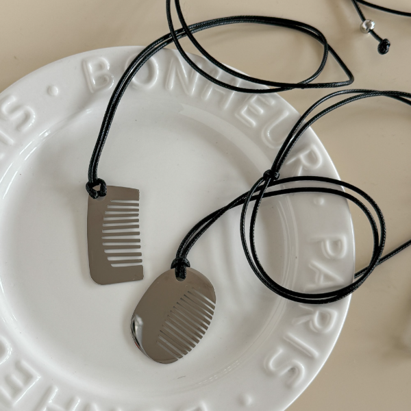 [멀티템] 실버 브러쉬 메탈 롱 머리빗 목걸이 2type
