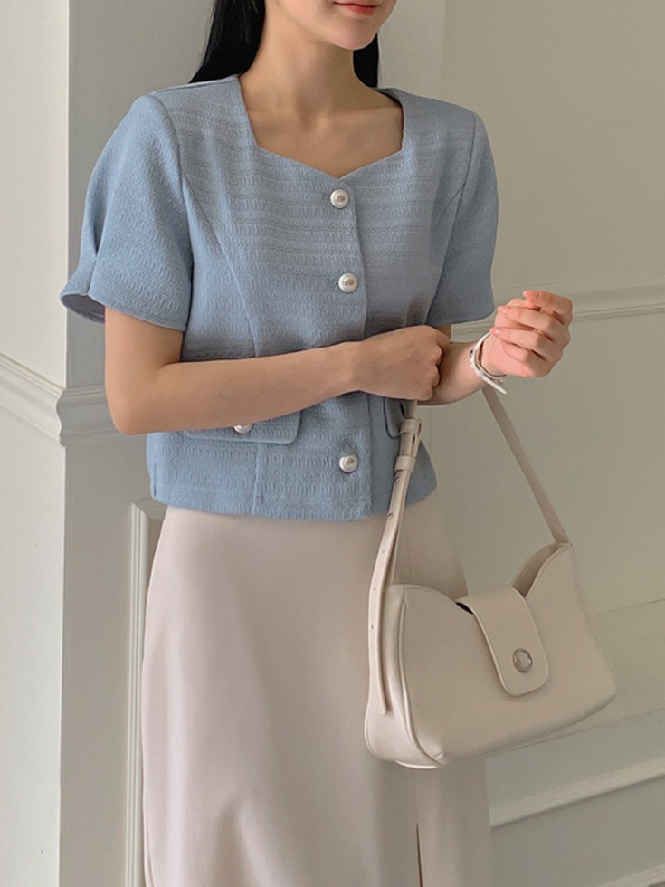 [고급미 UP/격식룩추천] [44-120] 베르빗드 트위드 하트넥 핀턱 반팔 자켓 ( 신상-봄-여름-가을-하객룩-격식룩-오피스룩-출근룩-소개팅룩-데일리룩-여름하객룩-빅사이즈-120사이즈-자체제작-반팔자켓 )