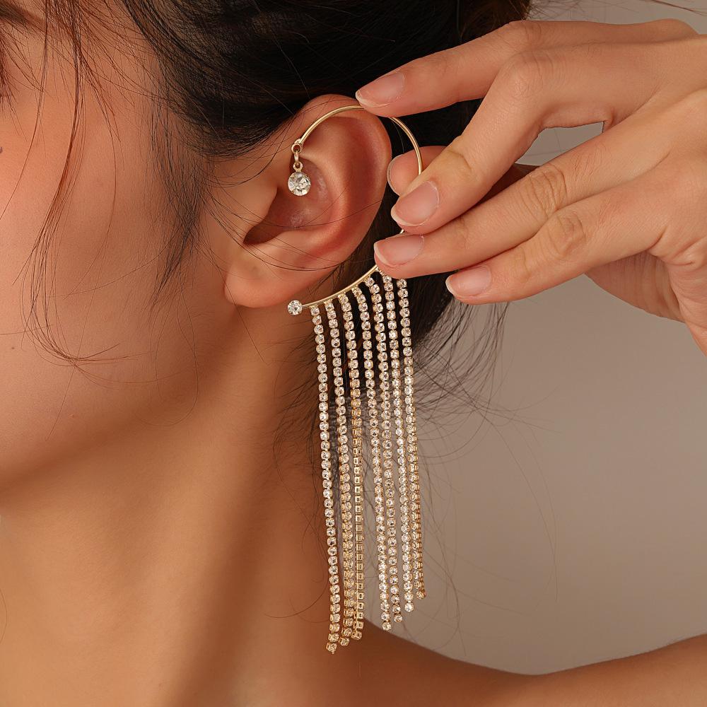 큐빅 7태슬 귀걸이 왼쪽귀용 이어커프 화려한 반짝 롱 드롭 귀안뚫은 피어싱 클럽 파티