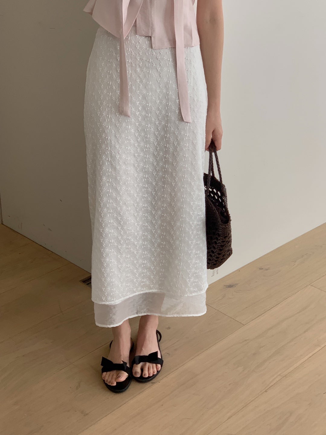 [🌸롱스커트] 미엘 라네 자수 밴딩 프릴 스커트 1color