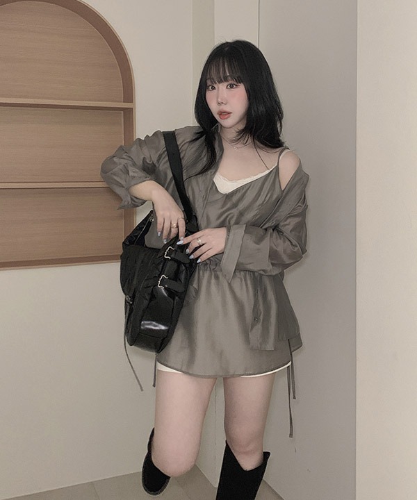 #13302 [모델소장] 시크 레이어드 시스루 뷔스티에 스트링 나시 미니원피스 : 3color