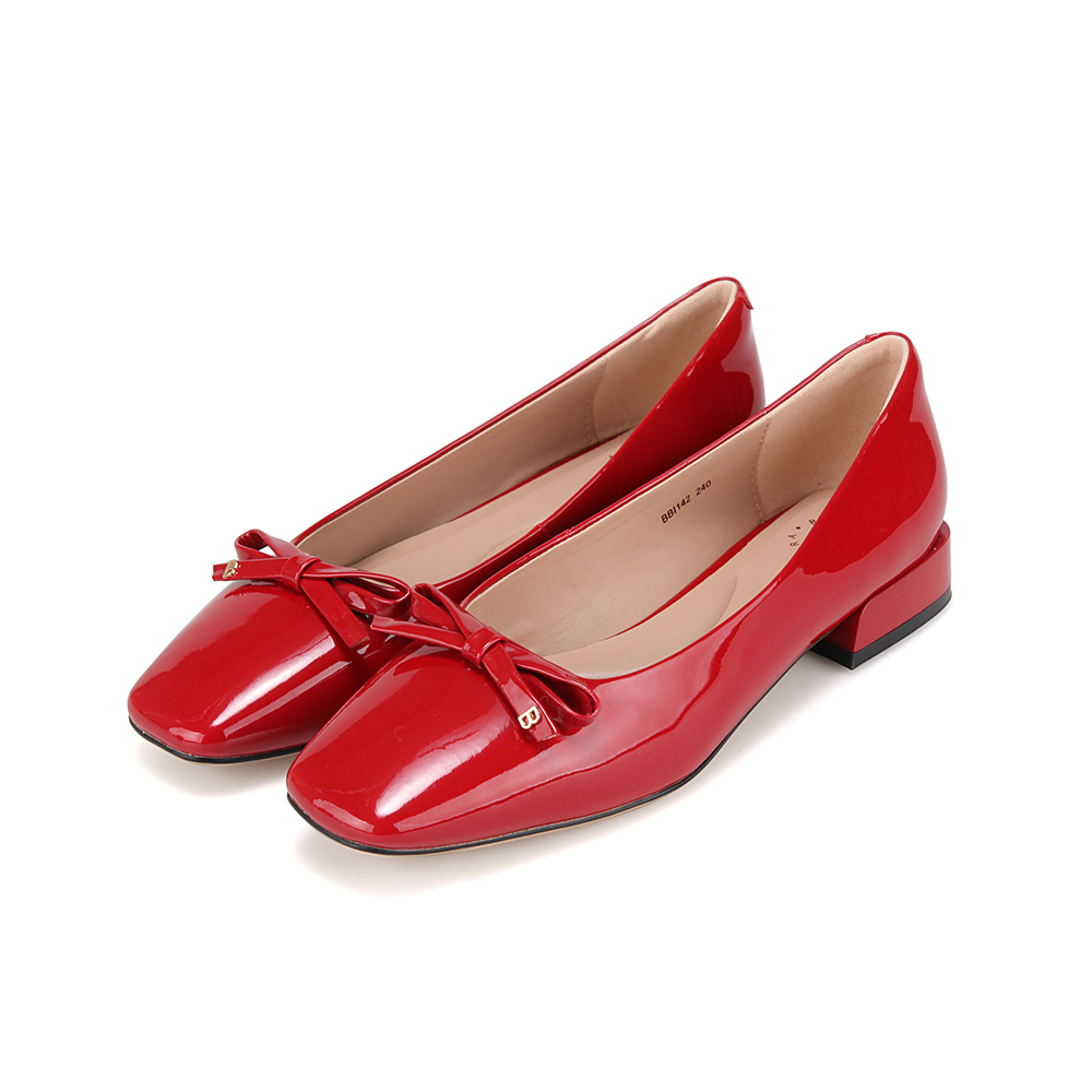 바바라 소가죽 리본장식 사각토 여성플랫 3cm_BBI142RE