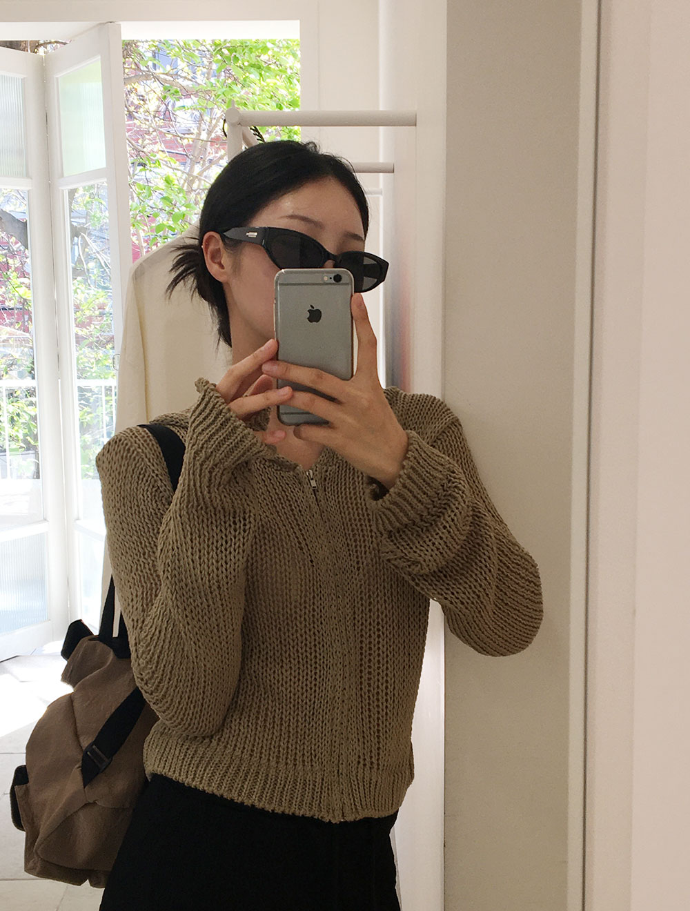 사운즈 네트짜임 후디 니트 집업 (3color)
