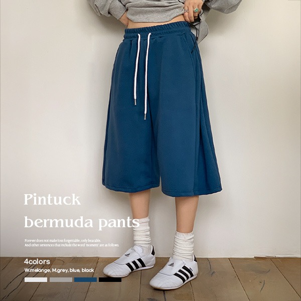 [남녀공용/하체커버] 이안 핀턱 밴딩 버뮤다 팬츠 (44~77) (와이드버뮤다-체형커버-와이드바지-밴딩트레이닝팬츠-교복바지-밴딩A라인핏바지-사이드핀턱-유니섹스-데일리룩)
