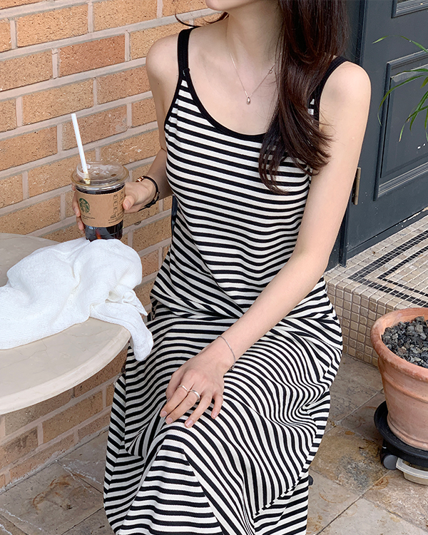[단독][나시원피스💙/휴양지원피스] 여름 스트랩 스트라이프 a라인 맥시 롱 원피스 4426