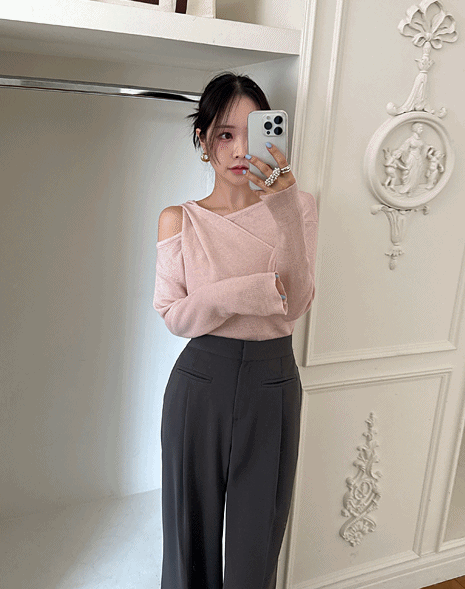 이엘 어깨 트임 니트