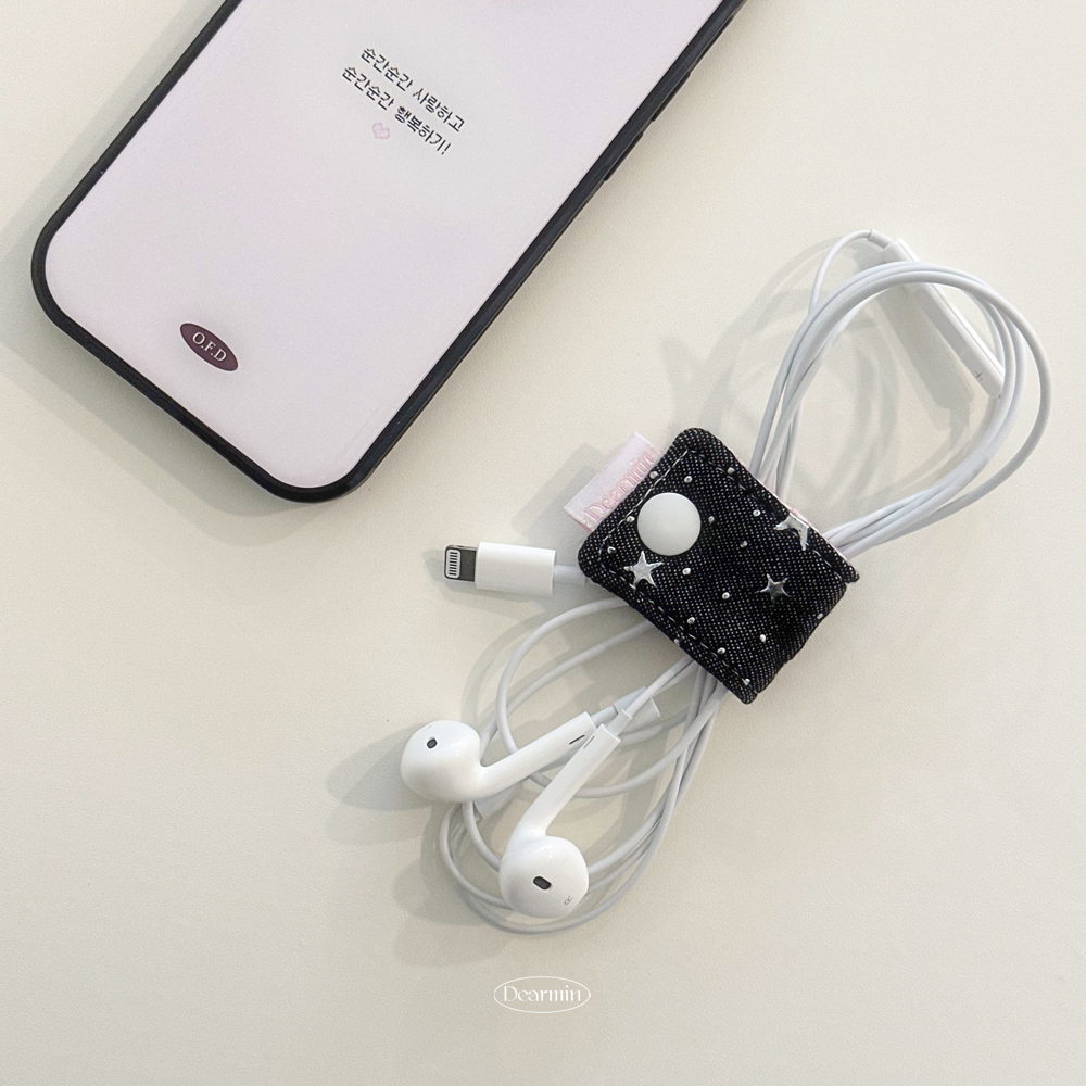패브릭 이어폰 홀더 케이블 충전기 선 정리 줄감개