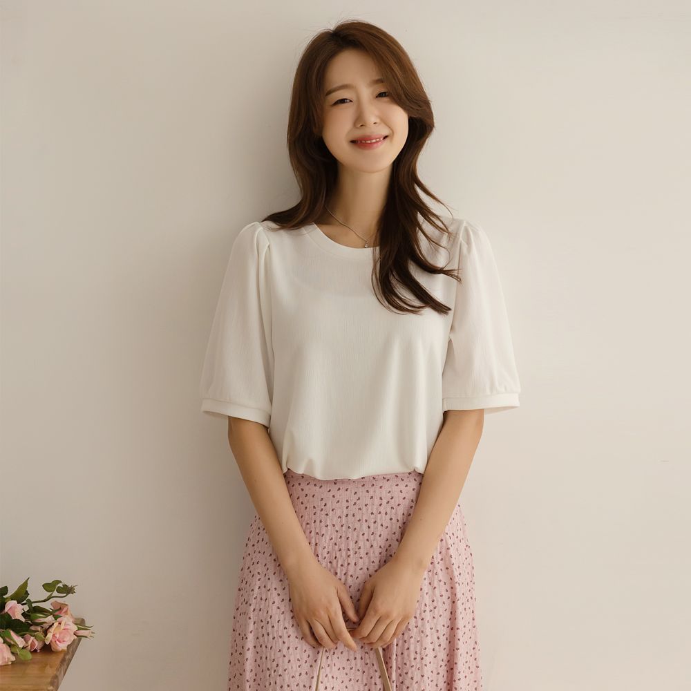 [66-110] 번코 핀턱 퍼프 반팔 티