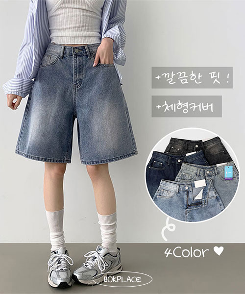 [5부기장/핏존예]루즈 버뮤다 허벅지 커버 쿨링 5부 데님 반바지