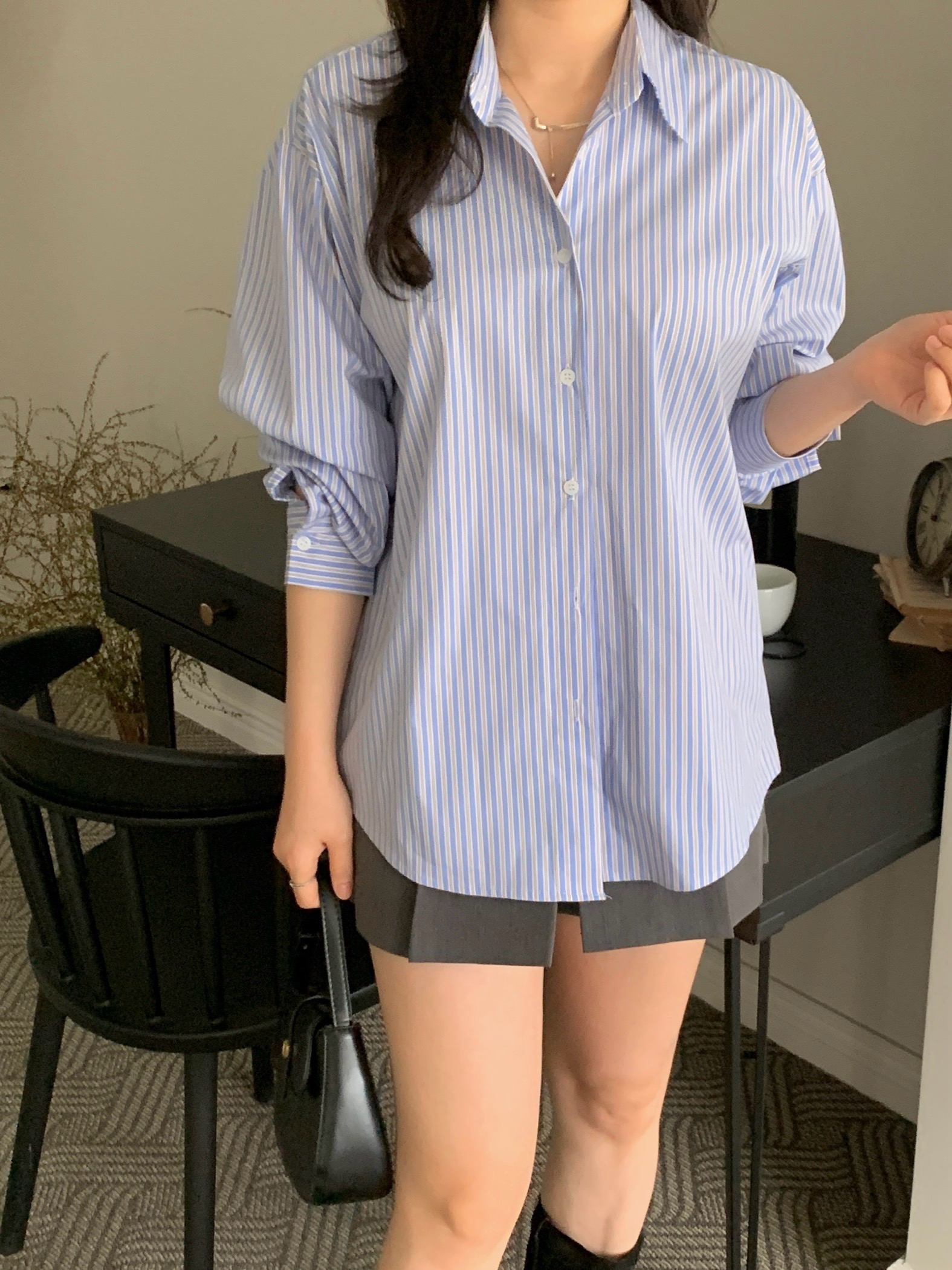 [봄신상/스판원단/박시핏]멜즈 스트라이프 셔츠 (2colors)