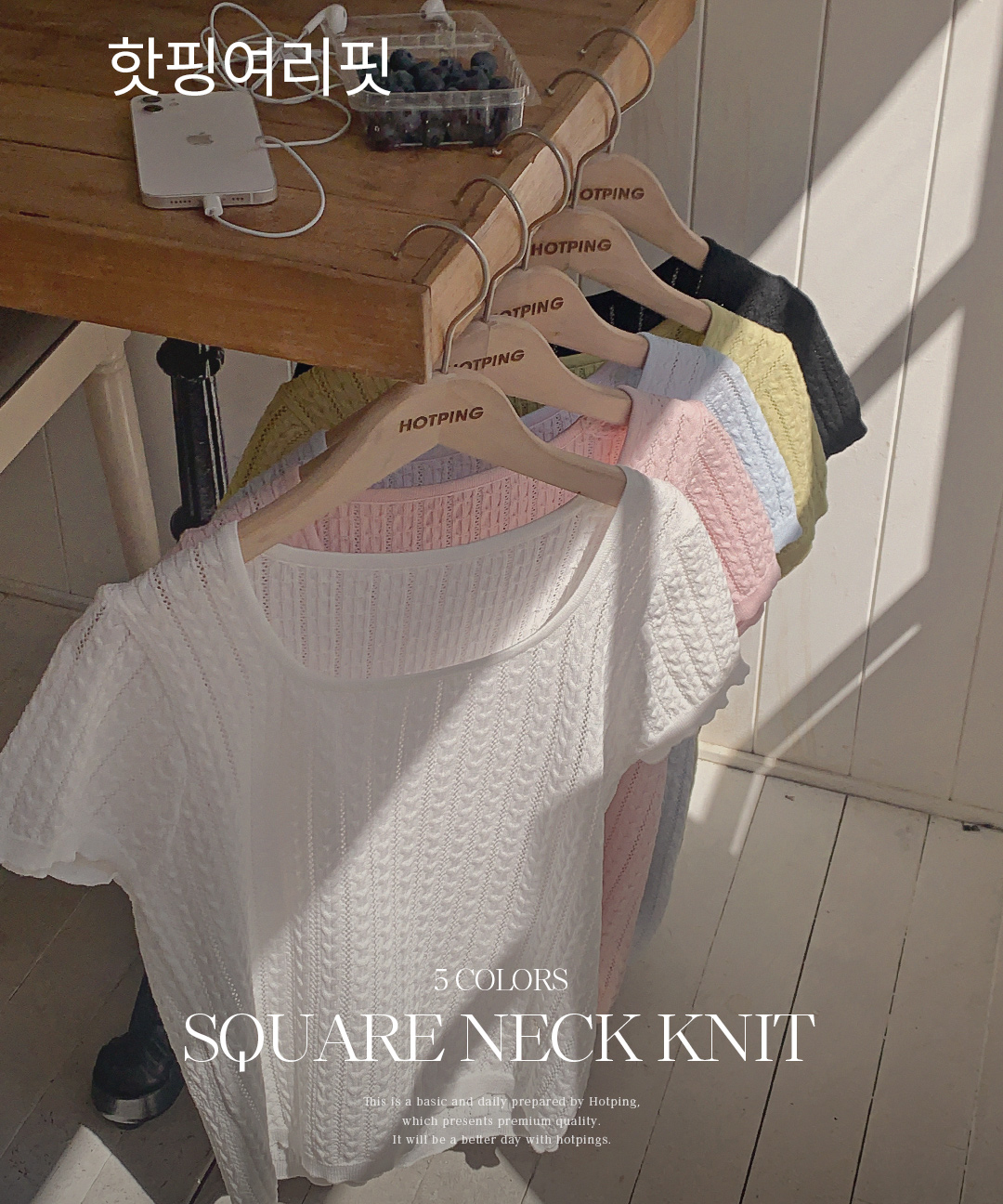 [참포인트/펀칭니트][5컬러🌈][핫핑여리핏] 핀르 스퀘어넥 케이블 반팔니트 (44~66) (캡소매니트-세미크롭-기본아이템-베이직반팔니트-포인트펀칭짜임-여리핫핑-슬림핏-체형커버)