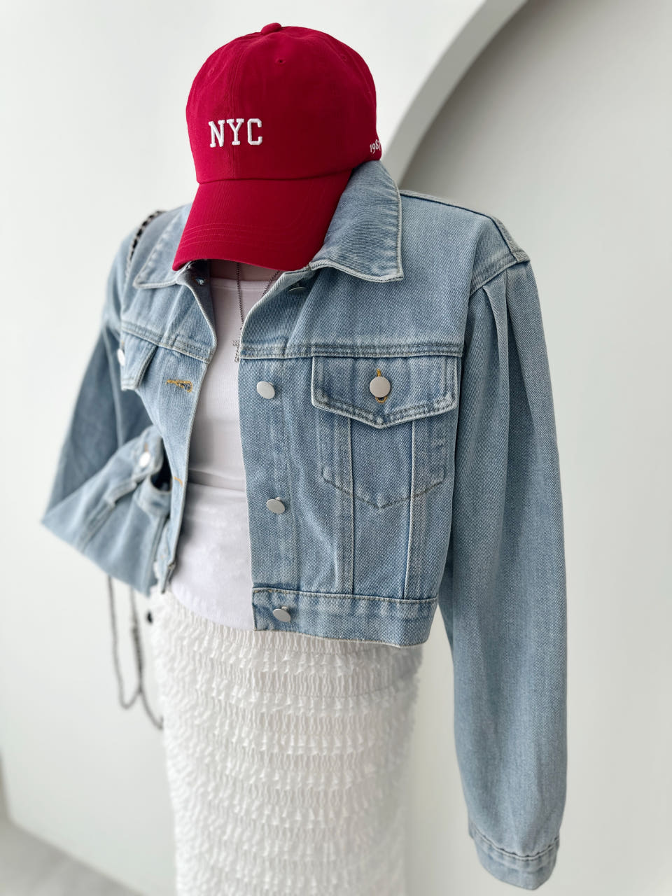 2color 벨리 여자 봄 데일리 숏 청자켓 데님 크롭 자켓