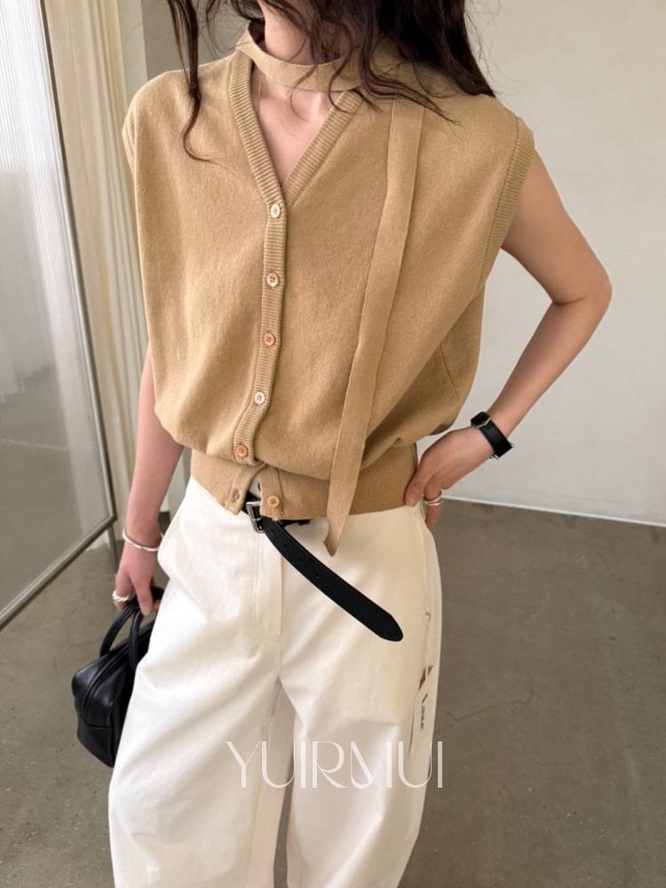 LAKE 레이크 올리 타이 가오리 브이넥 니트 조끼 베스트 6color