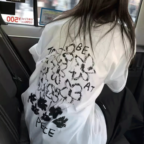 [오버핏/캐주얼] 라이스 플라워 프린팅 빈티지 반팔 티셔츠