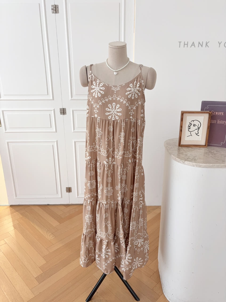 [땡큐]마놀린 끈조절 플라워 오버핏 뷔스티에 롱 원피스(2color)N-306