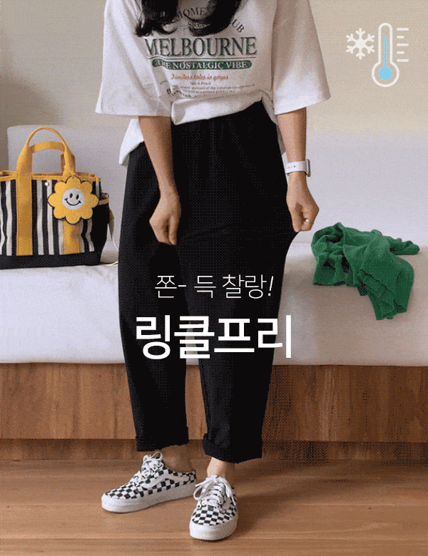 쿨스마일 자수 포켓 여유핏 밴딩 팬츠 (3color)